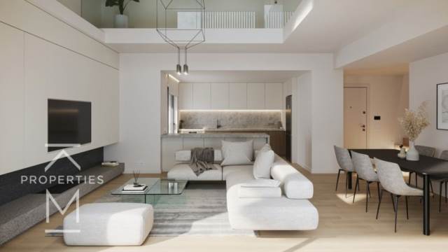 Duplex Διαμέρισμα 128 τ.μ. σε υπό ανέγερση συγκρότημα διαμερισμάτων στη Νέα Κηφισιά που θα ολοκληρωθεί το 2025. Το συγκρότημα βρίσκεται σε πολύ κοντινή απόσταση από τα σχολεία, super market, φαρμακεία και καταστήματα της Νέας Κηφισιάς, καθώς και από τις αγορές της Ν. Ερυθραίας και της Κηφισιάς. Το συγκεκριμένο διαμέρισμα βρίσκεται στο Ισόγειο (71 τ.μ.) και στον 1ο όροφο (60 τ.μ.) του συγκροτήματος και αποτελείται από 3 υ/δ και 2 μπάνια. Το διαμέρισμα διαθέτει ξύλινα δάπεδα παντού, αλουμίνια με θερμοδιακοπή, θερμοπρόσοψη, ενδοδαπέδια θέρμανση– VRV και τζάκι βιοαιθανόλης. Επιπλέον διαθέτει 2 υπόγειες θέσεις πάρκινγκ με παροχή ρεύματος για ηλεκτρικά οχήματα και αποθήκη. Το διαμέρισμα διαθέτει επίσης πισίνα 19τμ και κήπο 100τμ.