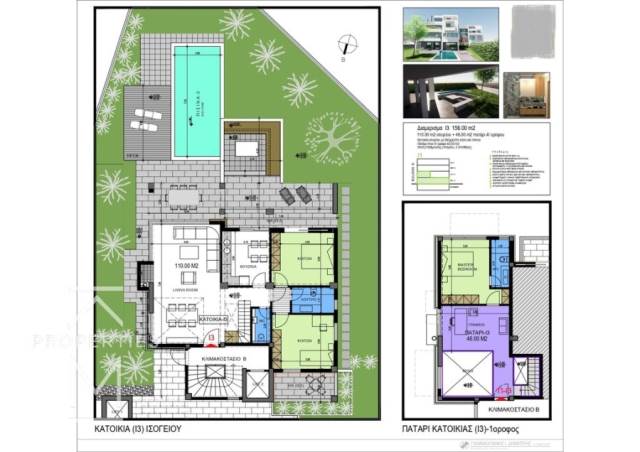 Το κυρίως επίπεδο με άμεση προσβαση στην πισινα ειναι 110 τμ ενώ στο επανω επιπεδο του πρώτου υπαρχει 46τμ χωρος υπνοδωματιων. Στην παρουσα φάση οι χωροι της κατοικιας μπορουν να διαμορφωθουν σύμφωνα με τις ανάγκες του αγοραστή/αγοράστριας. Ι3Σ.
