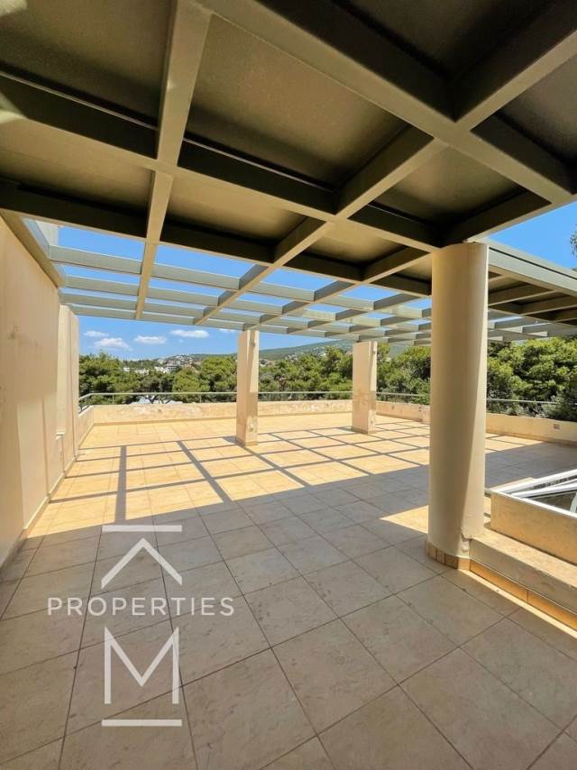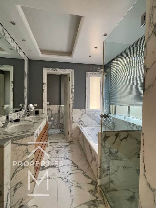 Το πρώτο καταλαμβάνει το ισόγειο και το playroom, είναι 448 τ.μ. και διαθέτει εντυπωσιακό ιδιόχρηστο κήπο 700 τ.μ., πέργκολα & χτιστό Βbq.Αποτελείται από ευρύχωρο και φωτεινό χώρο υποδοχής με άμεση πρόσβαση στον κήπο, ξεχωριστή κουζίνα και 4 υπνοδωμάτια (το ένα master) στο ισόγειο και φωτεινό σαλόνι που βγαίνει σε εξωτερικό χώρο, wc ξένων, δωμάτιο υπηρεσίας, laundry και αποθηκευτικούς χώρους στο playroom lστο πιο κάτω επίπεδο.Το 2ο καταλαμβάνει τον 1ο & 2ο όροφο, είναι 323τ.μ και διαθέτει roof garden 200τ.μ. με BBQ και απεριόριστη θέα, δωμάτιο υπηρεσίας, laundry και αποθήκη. Το διαμέρισμα αποτελείται από ευρύχωρο και φωτεινό χώρο υποδοχής που βγαίνει σε φαρδιά βεράντα, ξεχωριστή κουζίνα με καθημερινό καθιστικό και 2 υπνοδωμάτια που μοιράζονται ένα μπάνιο στον 1ο όροφο και ένα μεγάλο master υπνοδωμάτιο και wc στον 2ο. Τέλος η κατοικία διαθέτει ενδοδαπέδια θέρμανση πετρελαίου με αυτονομία ανά όροφο, ασανσέρ σε όλους τους ορόφους και 5 υπόγειες θέσεις στάθμευσης.