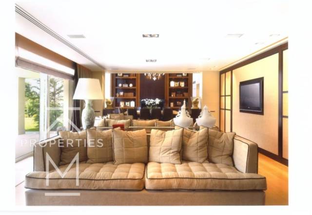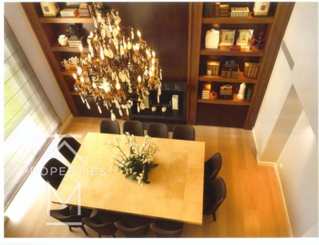 Πρόκειται για μεζονέτα ισογείου και 1ου ορόφου, σε πολυτελές κτίριο διαμερισμάτων. Το ακίνητο διαθέτει εξαιρετικά τελειώματα με ειδικές κατασκευές από ξύλο μαόνι και δρυ, μάρμαρα travertine και πατώματα απο Δρυς Αμερικής. Λόγω της εξαιρετικής κατασκευής και σχεδιασμού, με ελάχιστες συντηρήσεις ξεπερνά ακόμα και νεόδμητες κατοικίες. Οι κύριοι χώροι της οικίας έχουν συνολική επιφάνεια 424,10 τ.μ., 209,00 τ.μ. Ισόγειο και 215,10 τ.μ. o 1ος. Το Ισόγειο αποτελείται από σαλόνι με τζάκι, τραπεζαρία με οροφή διπλού ύψους και ένα ακόμα τζάκι, πλήρως εξοπλισμένη κουζίνα, δωμάτιο υπηρεσίας με μπάνιο, laundry room και WC. Ο 1ος όροφος αποτελείται από 4 Υ/Δ όλα με το δικό τους μπάνιο, καθιστικό και 2 βεράντες. Η μεζονέτα διαθέτει αποκλειστική χρήση κήπου με πισίνα, 3 αποθήκες και 2 κλειστές θέσεις στάθμευσης. Η ποιότητα κατασκευής είναι εξαιρετική και η διαμόρφωση των εσωτερικών χώρων είναι πολυτελής με εξαιρετικά υλικά προσδίδοντας στο ακίνητο προστιθέμενη αξία. Λόγω άριστου σχεδιασμού η κατοικία ξεχωρίζει γιατι στα τετραγωνικά αυτά συνδυάζει ανέσεις μονοκατοικίας χωρίς να υπάρχουν χαμένοι χώροι.