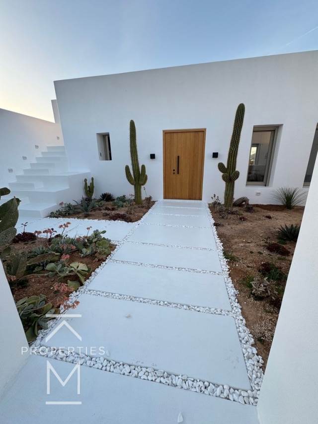 The main house consists of 3 bedrooms with 3 bathrooms ensuite, a large kitchen, an open plan dining and sitting area and an extra WC. The building is situated insuch a way that all spaces face the sea.