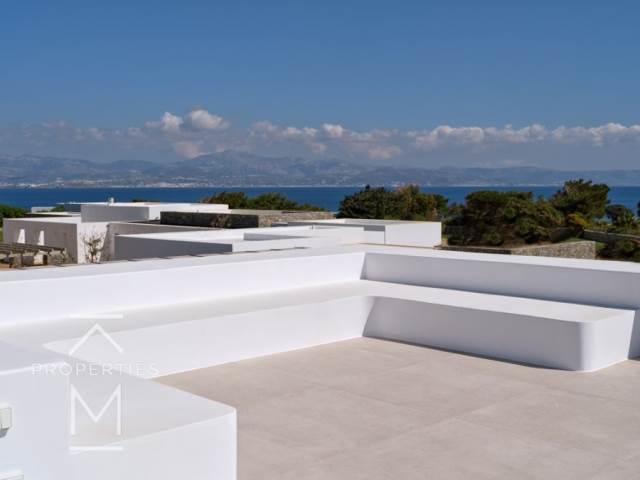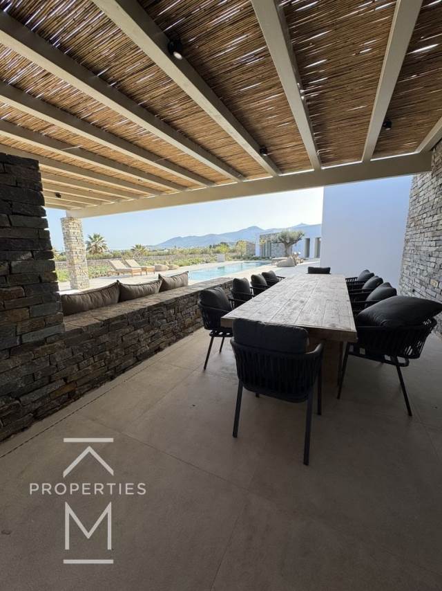 The great advantage of the property is the proximity and the unobstructed view to the sea in combination with the large swimming pool and the pergola-shaded externalsitting and dining areas with an open-air bar, fulfilling all the expectations from a holiday house.The roof top lounge offers amazing view overlooking Isterni bay and Naxos island.