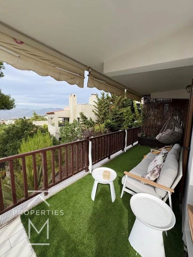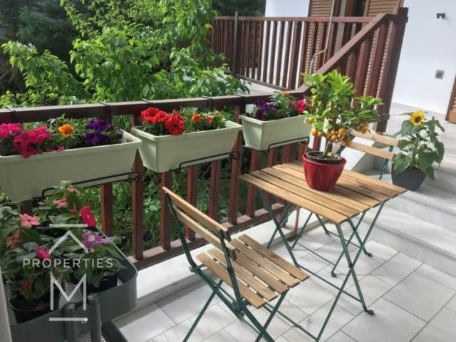 Οι χώροι είναι άνετοι, φωτεινοί και λειτουργικοί, με σύγχρονη αισθητική και περιμετρικά μπαλκόνια που προσφέρουν ξεχωριστή εμπειρία διαμονής.Το μπροστινό μπαλκόνι έχει απίστευτη θέα και μαγευτικά ηλιοβασίλεμα, ενώ το πίσω βλέπει προς καταπράσινο κήπο, προσφέροντας απόλυτη ιδιωτικότητα. Και τα δύο διαθέτουν χώρο για καθιστικό, ιδανικό για χαλάρωση ή φιλοξενία.Στην περιοχή, σε 5’ με τα πόδια θα βρείτε: σχολείο, κολυμβητήριο, γήπεδο μπάσκετ, παιδική χαρά, πλατεία και περίπτερο, καθιστώντας το ιδανικό για οικογένειες.Ένα εξαιρετικό διαμέρισμα σε ήσυχη, καταπράσινη περιοχή με όλα τα πλεονεκτήματα της Πολιτείας σε κοντινή απόσταση.