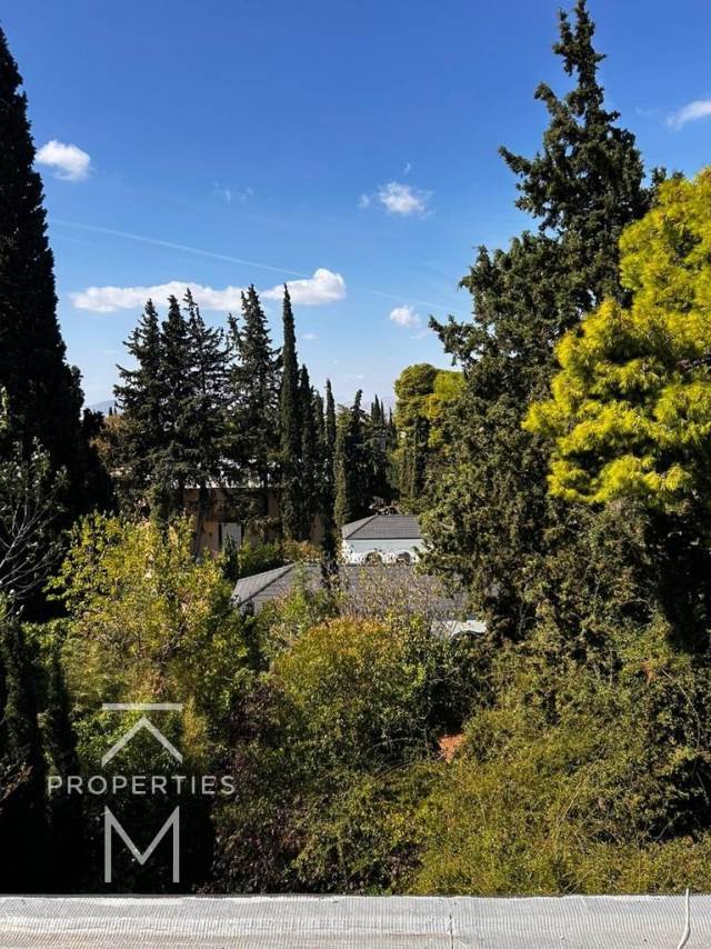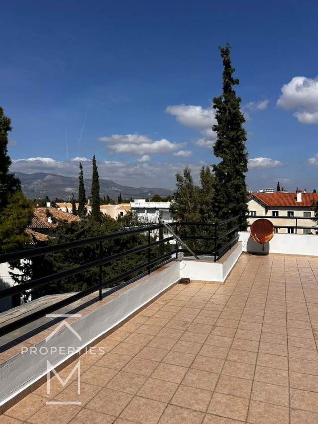 Ρετιρέ 2ου ορόφου 210τ.μ. στο οποίο ανήκει το Δώμα 30 τ.μ. με αποκλειστική χρήση τμήματος ταράτσας 100τ.μ. Το δώμα αποτελεί ανεξάρτητο κομμάτι του ακινήτου και διαθέτει δικό του μπάνιο.Και από τους 2 ορόφους έχουμε εξαιρετική θέα στους όμορφα φιλοτεχνημένα κήπους του οικοπέδου και στο πράσινο της Κηφισιάς.Το κυρίως σπίτι (2ος ορ.) διαθέτει πολύ μεγάλο σαλόνι με προσβαση σε μεγάλα μπαλκόνια, τραπεζαρία, ανεξάρτητη κουζίνα με χώρο τραπεζαρίας 8 ατόμων, 1 WC, 3 Υ/Δ -το 1 Master με en suite μπάνιο και 2 γκαρνταρόμπες και τα 2 παιδικά υ/δ που μοιράζονται 1 Μπάνιο.Αυτόνομη Θέρμανση Φυσικού Αερίου, Kουφώματα Αλουμινίου, σίτες, πολλές ντουλάπες.Στο διαμέρισμα αντιστοιχεί μια θέση κλειστού γκαράζ και μια ανοιχτή θέση στο οικόπεδο, καθώς και μία αποθήκη.Το οικημα είναι του 1985, αλλά έχει γίνει θερμοπρόσοψη κτιρίου και έχουν κατασκευαστεί νέες μάντρες
