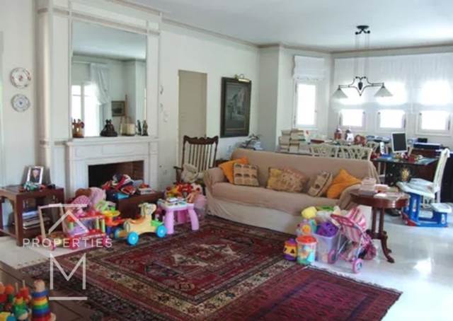 Εντός προσεγμένου συγκροτήματος, νεοκλασική μεζονέτα 3 επιπέδων με μικρό ιδιωτικό κήπο.Μεγάλο σαλόνι με τζάκι, ένα κυρίως υπνοδωμάτιο με ιδιωτικό μπάνιο, δύο παιδικά υπνοδωμάτια με 1 δικό τους μπάνιο.Πολλές εντοιχισμένες ντουλάπες για άνετη αποθήκευση, Δύο πλήρως εξοπλισμένες κουζίνες με καθιστικά, Playroom (με δυνατότητα διαμόρφωσης επιπλέον υπνοδωματίου), Δύο τζάκια (ισόγειο & ημιυπόγειο).Ενδοδαπέδια αυτόνομη θέρμανση (πετρέλαιο), Δωμάτιο υπηρεσίας και μεγάλη αποθήκη, 2 wc, 1 με καμπίνα ντουζιέρας.Αυλή με πέργκολα, μικρός ιδιωτικός κήπος και ευρύχωρα μπαλκόνιαΜία υπαίθρια θέση στάθμευσης με δυνατότητα φόρτισης ηλεκτρικού αυτοκινήτου και κεντρική γκαραζόπορτα για εύκολη πρόσβαση.