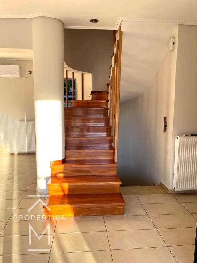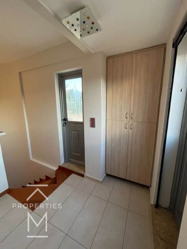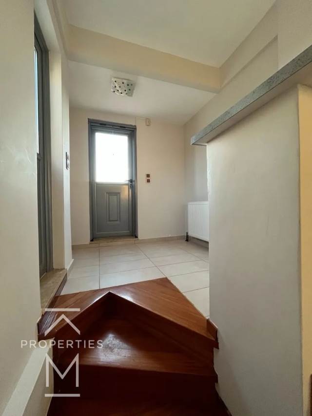 Στον 1ο όροφο έχουμε σαλόνι με θέα, ενιαίος χώρος κουζίνας με εντοιχισμένες ηλεκτρικές συσκευές (φούρνο, εστίες, πλυντήριο πιάτων), τζάκι, WC, πρόσβαση στον κήπο.Ο 2ος όροφος αποτελείται από 3 ευάερα υπνοδωμάτια με θέα και κεντρικό μπάνιο. Επιπλέον χώρος βοηθητικών χρήσεων, κατάλληλος για πλυντήριο ρούχων και οικιακό γραφείο.Κουφώματα αλουμινίου με διπλά τζάμια, σήτες και ηλεκτρικά ρολά, θυροτηλέφωνο, συναγερμός, αυτόνομη θέρμανση, ηλιακός θερμοσίφωνας.