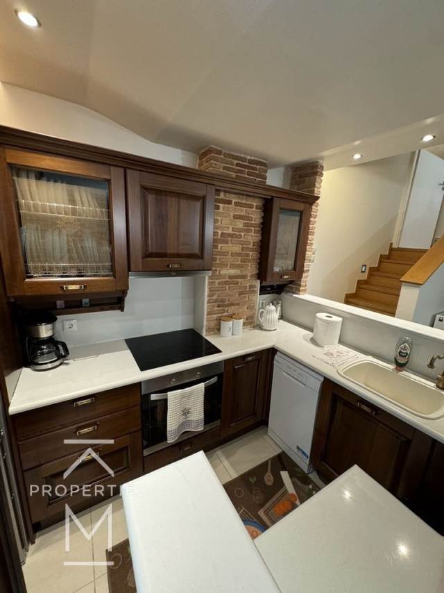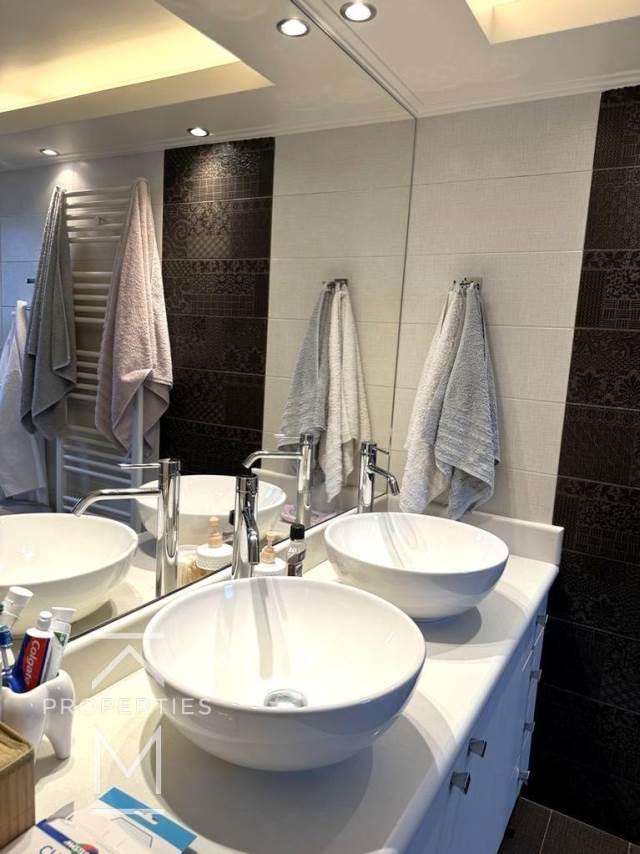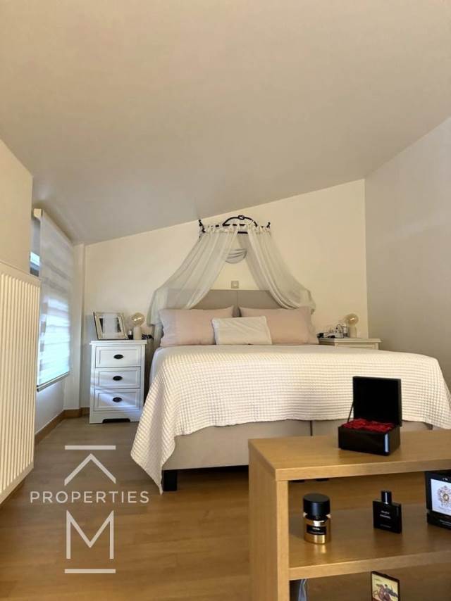 The main floor consists of a living room with fireplace, a seperate kitchen equipped with electrical appliances and wc. On the Upper level there are 3 bedrooms (one is en suite and has extra space as an office), one sharing bathroom for the other two bedrooms.The lower floor has another living room, kitchen fully equipped, access to the private pool and garden, 2 more bedrooms (1 master), 2 bathrooms (It can also be used as a separate apartment)