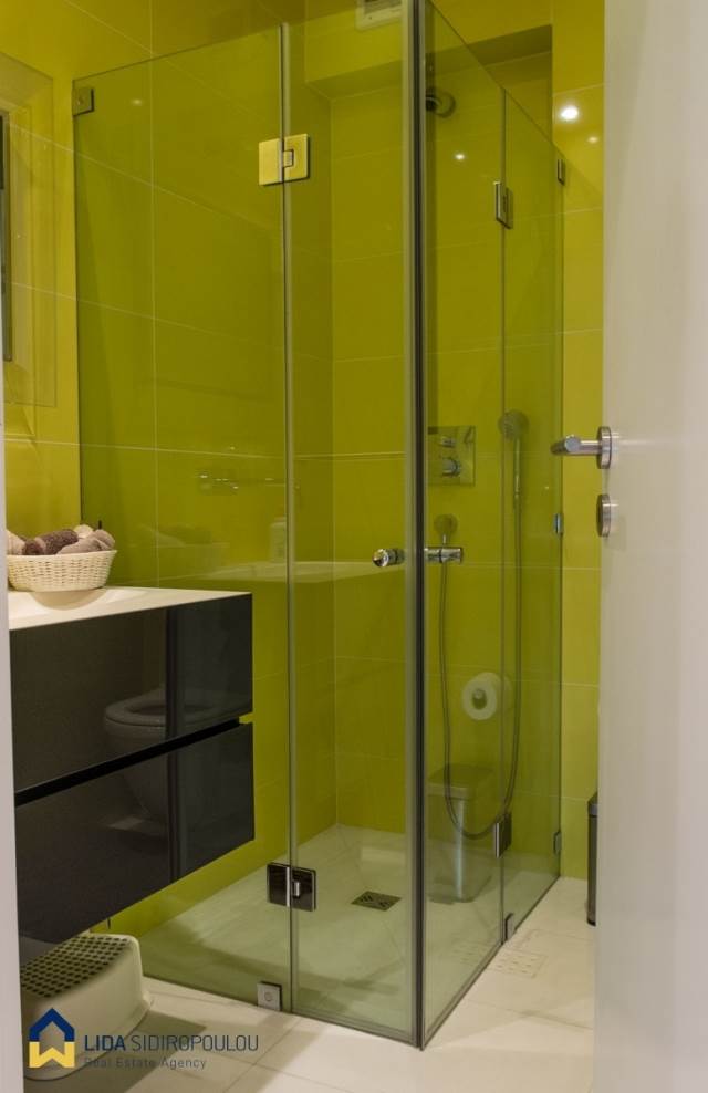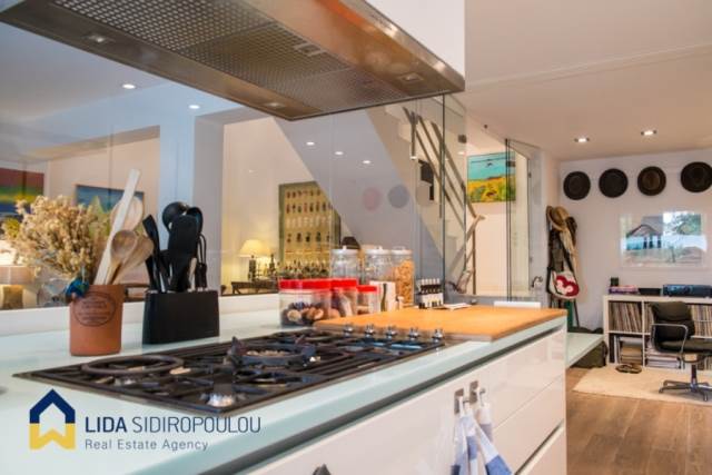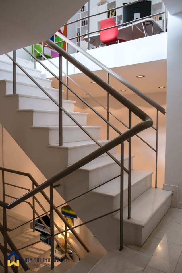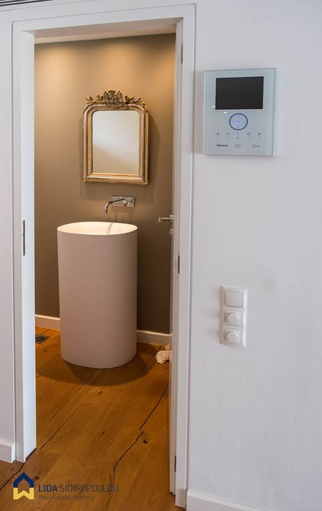 Εχει κρυφούς φωτισμούς και πολλούς αποθηκευτικούς χώρους, κουφώματα Αλουμινίου με Διπλά τζάμια,και τα δάπεδα είναι παρκε και λευκό μάρμαρο.
