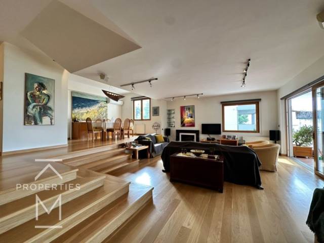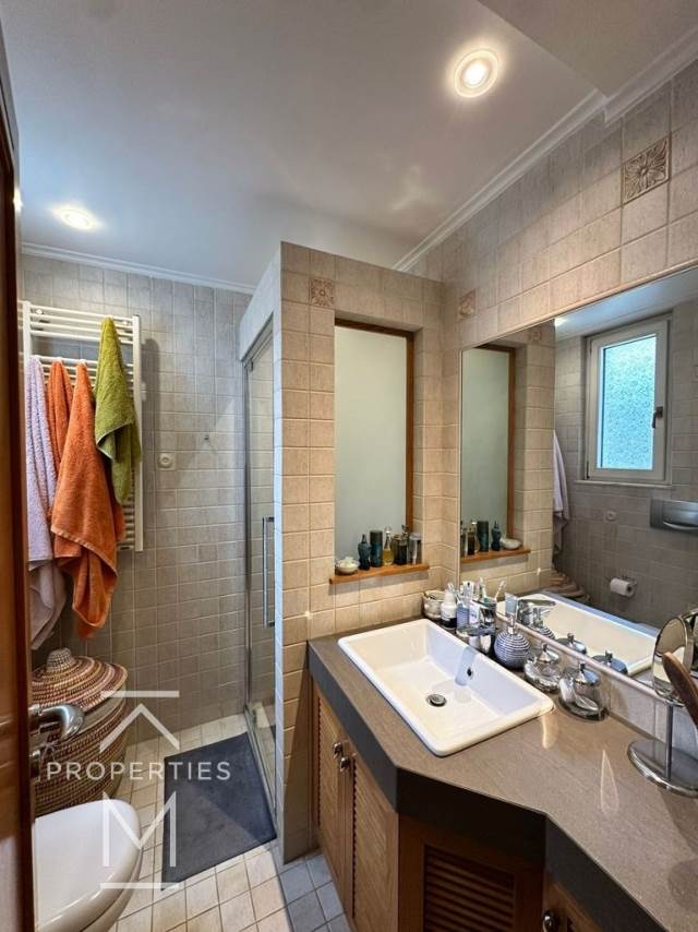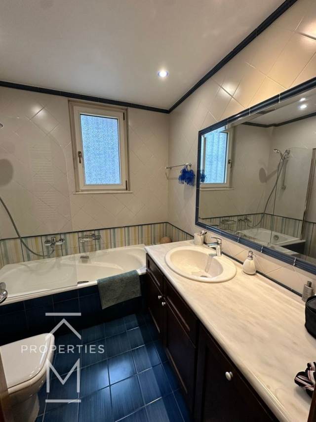 Εξαιρετικό διαμέρισμα 180τ.μ. 1ου ορόφου, με μεγάλη βεράντα με θέα θάλασσα, φωτεινό σαλόνι με τραπεζαρία σε 2ο επίπεδο, 3 υ/δ (το ένα master) συν γραφείο, 1 μπάνιο που μοιράζονται τα 2 παιδικά υ/δ, μεγάλη κουζίνα εξοπλισμένη με όλες τις ηλεκτρικές συσκευές, wc επισκεπτών, κλιμαστιστικά σε όλα τα υ/δ, αυτόνομη θέρμανση-πετρέλαιο, δρύινα πατώματα, 1 υπόγειο θέση στάθμευσης.