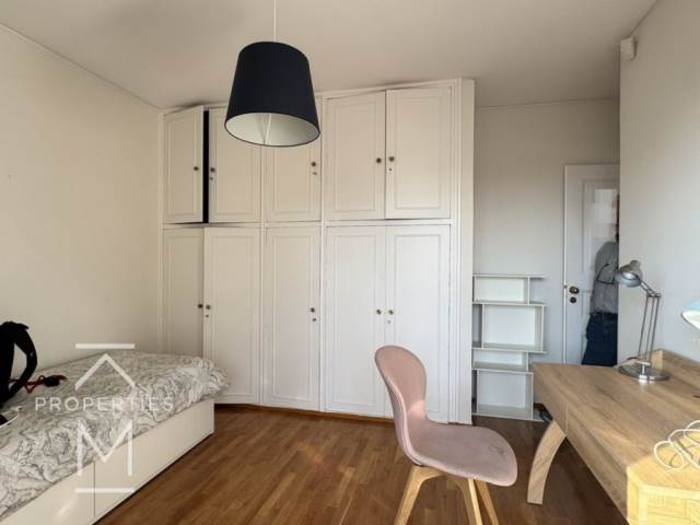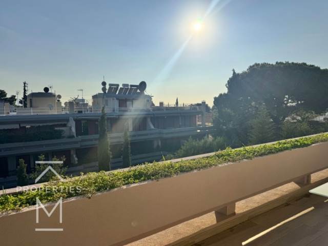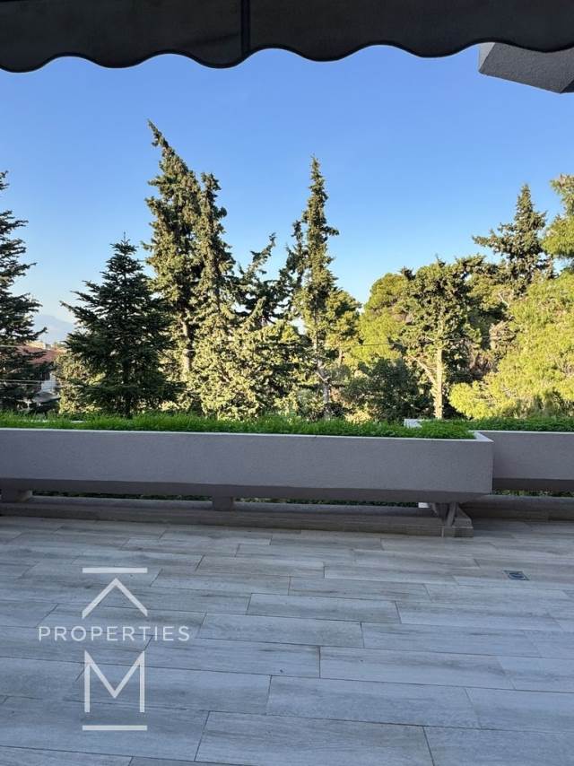 Ανακαινισμένο Ρετιρέ 2ου ορόφου 145τμ., 2 υ/δ, 1 μπάνιο, 1 wc, ευρύχωρο σαλόνι που βγαίνει σε πολύ μεγάλη βεράντα με ωραίο ορίζοντα σε πράσινο, κουζίνα εξοπλισμένη με ηλεκτρικές συσκευές, 1 θέση υπόγειου parking, αποθήκη.Κουφώματα Αλουμινίου, σίτες, συναγερμός, αυτόνομη θέρμανση φυσικού αερίου, Παρκέ πατώματα.Διατίθεται επιπλωμένο.