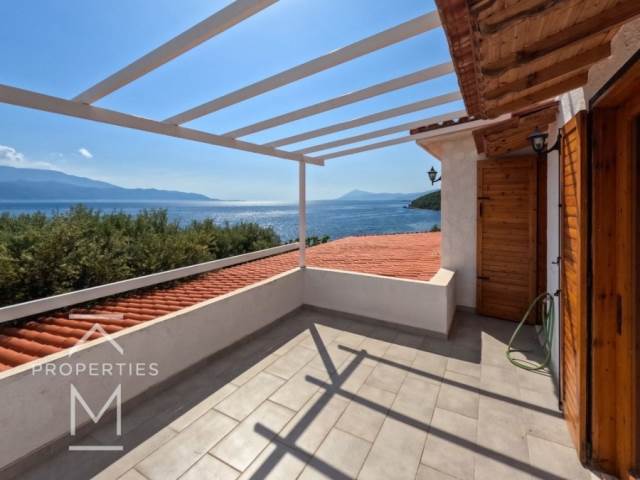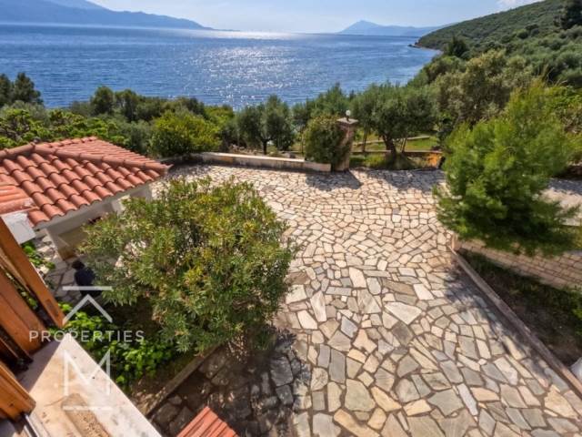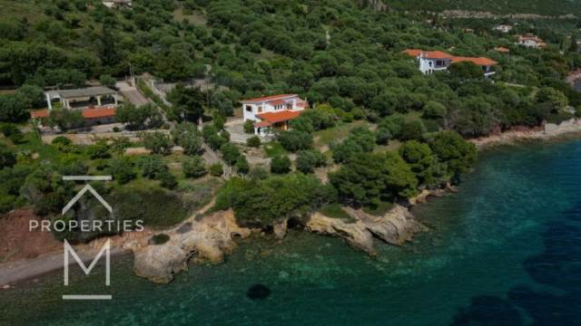 Παραθαλάσσια μονοκατοικία σε αγροτεμάχιο έκτασης 4,145 τ.μ. σε απόσταση 300 μ. από τον παραδοσιακό οικισμό του Σκαλώματος.Η κεντρική κατοικία αποπερατώθηκε το 1981 και αναπτύσσεται σε ισόγειο επιφάνειας 132 τ.μ. και 1ο όροφο επιφάνειας 65 τ.μ.Το 1995 κατασκευάστηκε βοηθητική κατοικία επιφάνειας 42 τ.μ. και δύο αποθήκες επιφάνειας 13 τ.μ. και 9 τ.μ. έκαστη.Το ακίνητο διαθέτει συνολικά ένα σαλόνι με τζάκι, τρεις κουζίνες, 7 υπνοδωμάτια, 4 μπάνια και ευρύχωρες βεράντες με ανεμπόδιστη θέα στη θάλασσα και στη γέφυρα του Ρίου.Στους εξωτερικούς χώρους υπάρχει ένα γήπεδο μπάσκετ και θέσεις στάθμευσης, καθώς επίσης το αγροτεμάχιο είναι κατάφυτο με 50 ελιές (κάποιες άνω των τριακοσίων ετών), λεμονιές, πορτοκαλιές, συκιές, μουριές και άλλα δέντρα.Μία μοναδική εξοχική κατοικία με πρόσβαση σε ιδιωτική παραλία πάνω στον Κορινθιακό Κόλπο, σε απόσταση μόλις 2,5 ώρες οδικώς από την Αθήνα.