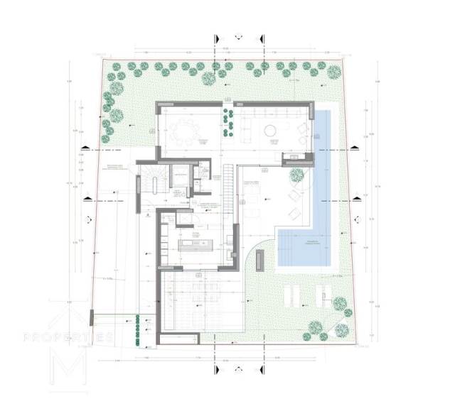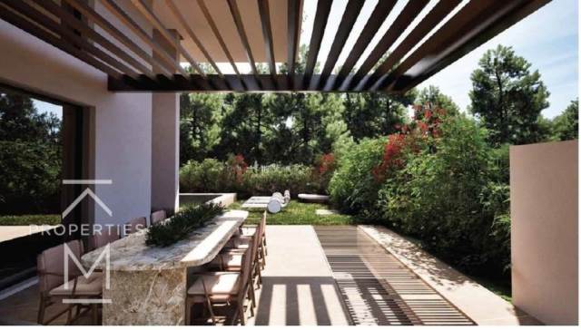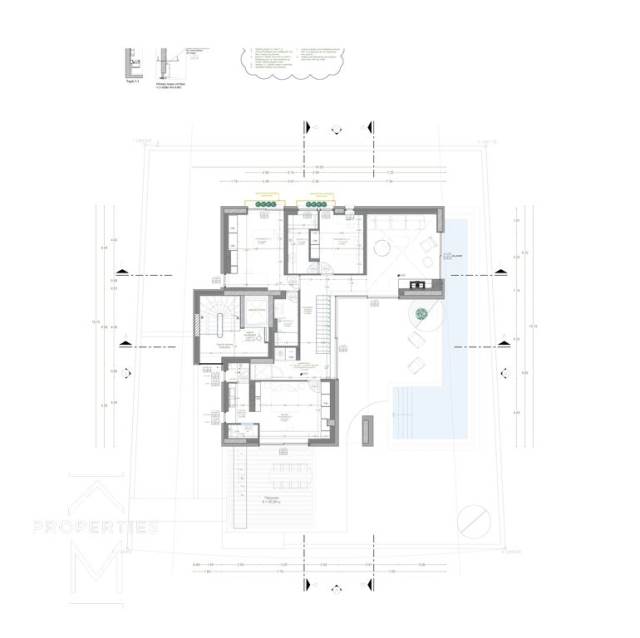 - Ισόγειο 140.36 m2, χώρος υποδοχής, κουζίνα, τραπεζαρία & καθιστικό, WC, εσωτερικό ασανσέρ- Εσωτερικός εξώστης (πατάρι) 112.15 m2, 1 master και 2 παιδικά υπνοδωμάτια, κάθε ένα με δικό του ensuite λουτρό- Aποκλειστική χρήση κήπου 322.15 m2 με πισίνα 56.35 m2
