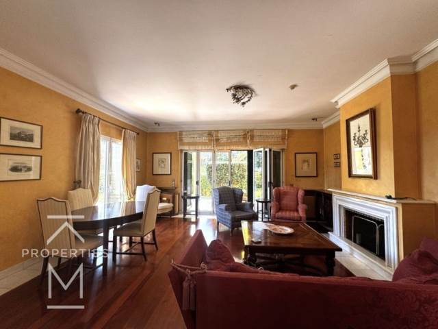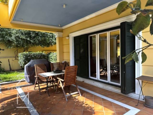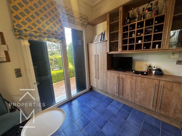 Στο ισόγειο βρίσκονται δύο ευρύχωροι και φωτεινοί χώροι σαλονιού, μια μεγάλη ξεχωριστή κλειστή κουζίνα, WC επισκεπτών και άμεση πρόσβαση στον όμορφο κήπο.
