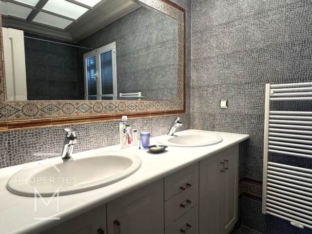 Στον 1ο όροφο υπάρχει ένα δωμάτιο ιδανικό για γραφείο ή βιβλιοθήκη, καθώς και ένα ευρύχωρο master υπνοδωμάτιο με μεγάλο μπάνιο και άνετο dressing room.
