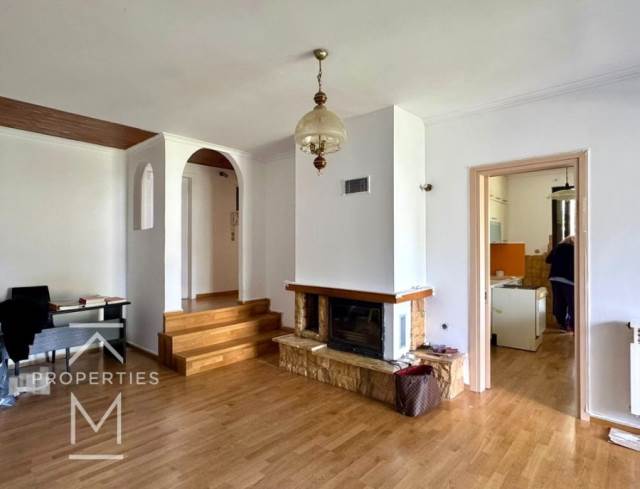Το διαμέρισμα αποτελείται από σαλόνι με άμεση πρόσβαση στην βεράντα, επιπλεόν καθιστικό με τζάκι έξω από την κουζίνα, 2 υ/δ & 3ο δωμάτιο (χωρίς ντουλάπες), 1 μπάνιο και 1 wc.