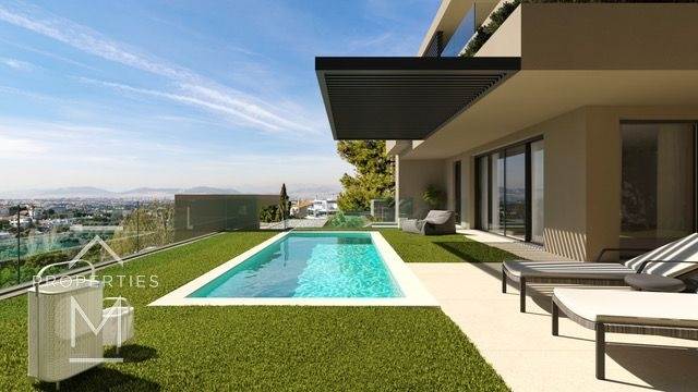 Kifissia, Politia, Penthouse For Sale, 305 sq.m., In Plot 1300 sq.m., Property Status: Minimal Design, Floor: 2nd, 2 Level(s), 4 Bedrooms (1 Master), 1 Kitchen(s), 3 Bathroom(s), 1 WC, Heating: Personal - Heat Pump, Building Year: 2024, Energy Certificate: A+, 2 parking(s), Type of door frames: Aluminum, Features: Elevator, Security door, Security alarm, CCTV, Storage room, Fireplace, Playroom, Double Glazed Windows, Triple Glazed Windows, Window Screens, Pets Allowed, Luxury, Airy, Roadside, Bright, Underfloor, AirConditioning, Boiler, Grass, Swimming pool, Back yard (Garden), New Construction, Price: 1.670.000€. KM Properties, Tel: 6981009333, email: katerina.miltsakaki@gmail.com