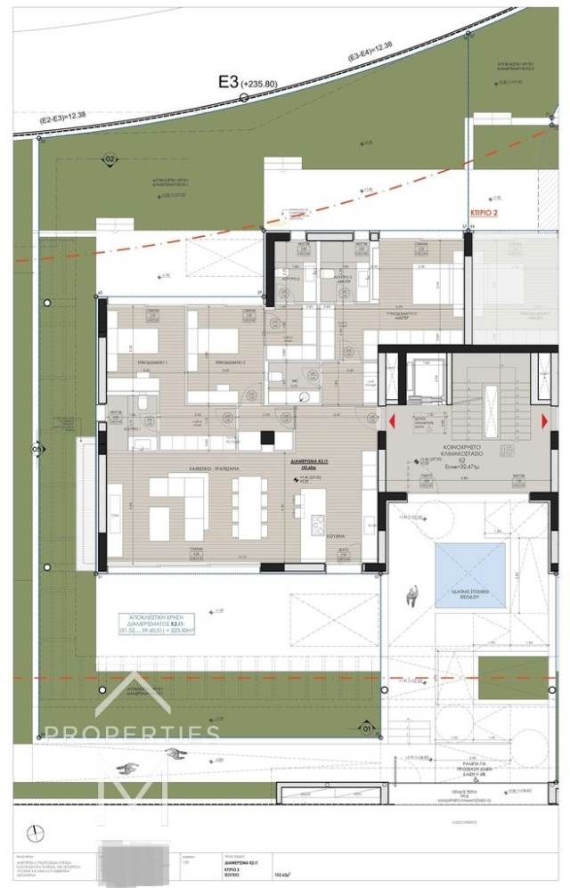 Kifissia, Kato kifissia, Apartment For Sale, 150 sq.m., Property Status: Under Construction, Floor: Ground floor, 1 Level(s), 3 Bedrooms (3 Master), 1 Kitchen(s), 3 Bathroom(s), 1 WC, Heating: Autonomous - Heat Pump, View: Good, Building Year: 2025, Energy Certificate: A+, 1 parking(s), Type of door frames: Aluminum, Features: Elevator, Security door, Security alarm, CCTV, Storage room, Fireplace, Photovolatic Panels, Double Glazed Windows, Window Screens, Luxury, Airy, Roadside, Bright, On Corner, Underfloor, AirConditioning, Solar water system, Boiler, Grass, Swimming pool, Back yard (Garden), New Construction, Price: 1.200.000€. KM Properties, Tel: 6981009333, email: katerina.miltsakaki@gmail.com
