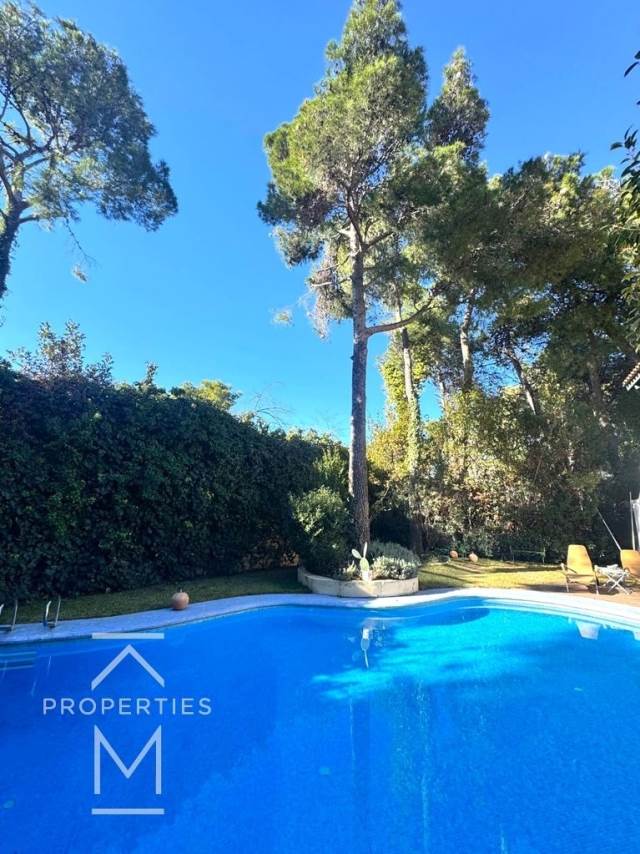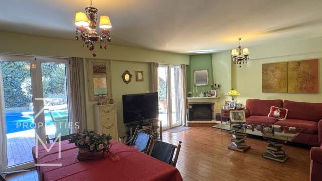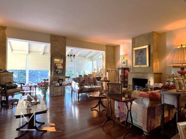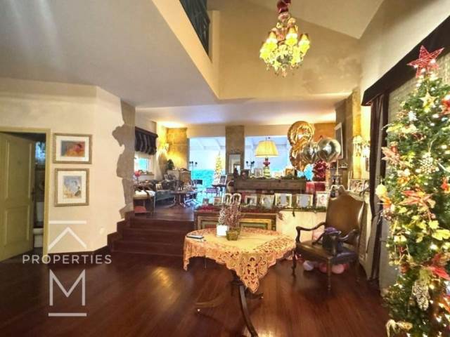 Ekali, Kato Ekali, Detached house For Sale, 325 sq.m., In Plot 563 sq.m., Property Status: Amazing, Floor: Ground floor, 4 Level(s), 5 Bedrooms (1 Master), 2 Kitchen(s), 3 Bathroom(s), 1 WC, Heating: Autonomous - Petrol, View: Οutdoors, Building Year: 1992, Energy Certificate: C, 2 parking(s), Floor type: Wooden floors, Type of door frames: Aluminum, Features: Elevator, Security door, Security alarm, CCTV, Storage room, Fireplace (2), Attic, Electric Appliances, Playroom, Internal Staircase, Double Glazed Windows, Window Screens, Balcony Cover, Balconies, Luxury, Mansion, Airy, Bright, AirConditioning, Boiler, Grass, Automatic Watering, Trees, Swimming pool, Back yard (Garden), Price: 1.470.000€. KM Properties, Tel: 6981009333, email: katerina.miltsakaki@gmail.com