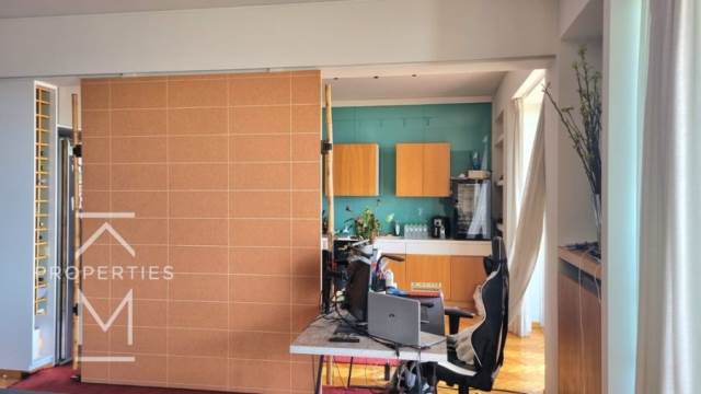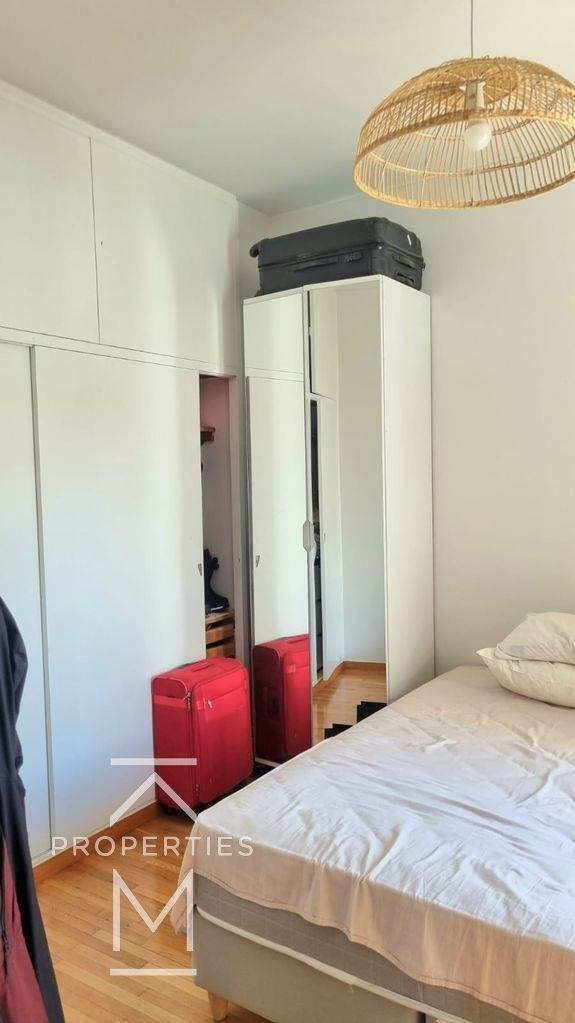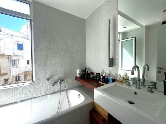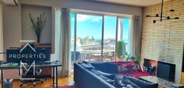 This exceptional corner apartment is perched on the 6th floor, offering breathtaking views of the sea, the city and the iconic Acropolis. Bathed in natural light from all sides, the residence enjoys a privileged location overlooking a charming park and a beautiful square. The interior features an open-plan layout featuring a modern living room, complete with a fireplace, which flows seamlessly into a colourful kitchen with a central island. The apartment includes two spacious bedrooms, a full bathroom with bathtub, a guest WC and a separate laundry room with a pantry space.